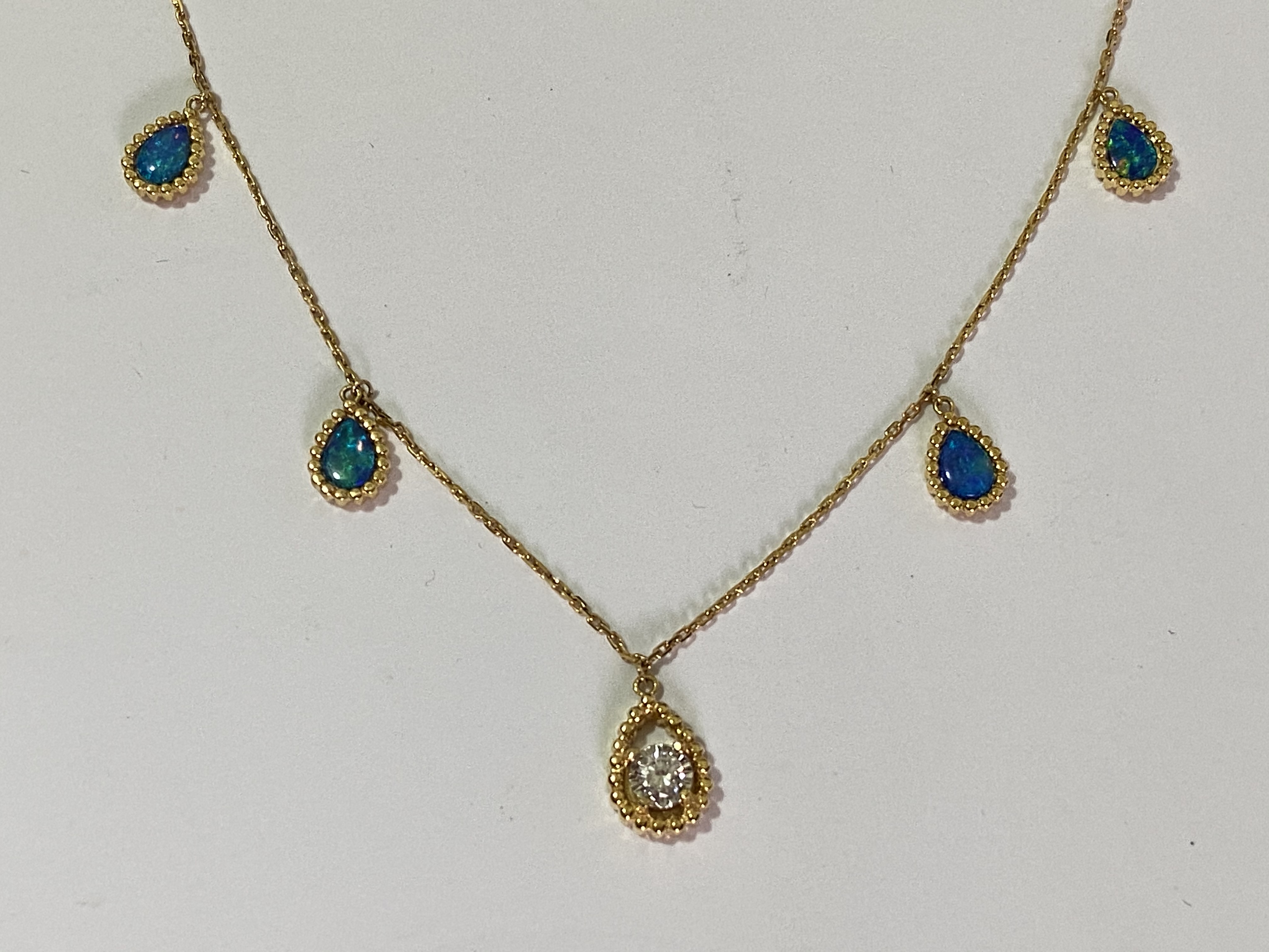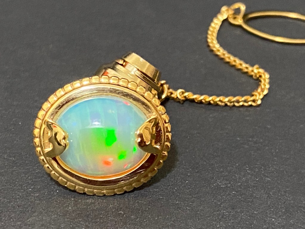 We decided to make these opals to 14K yellow gold and 14K white gold necklace respectively. We, no, it’s me, certainly learned something new, and now the yellow gold necklace is mine. Absolutely love the lesson!