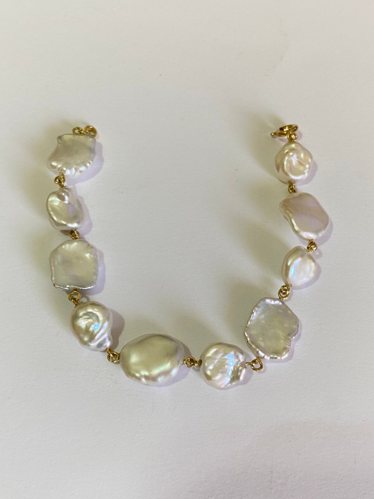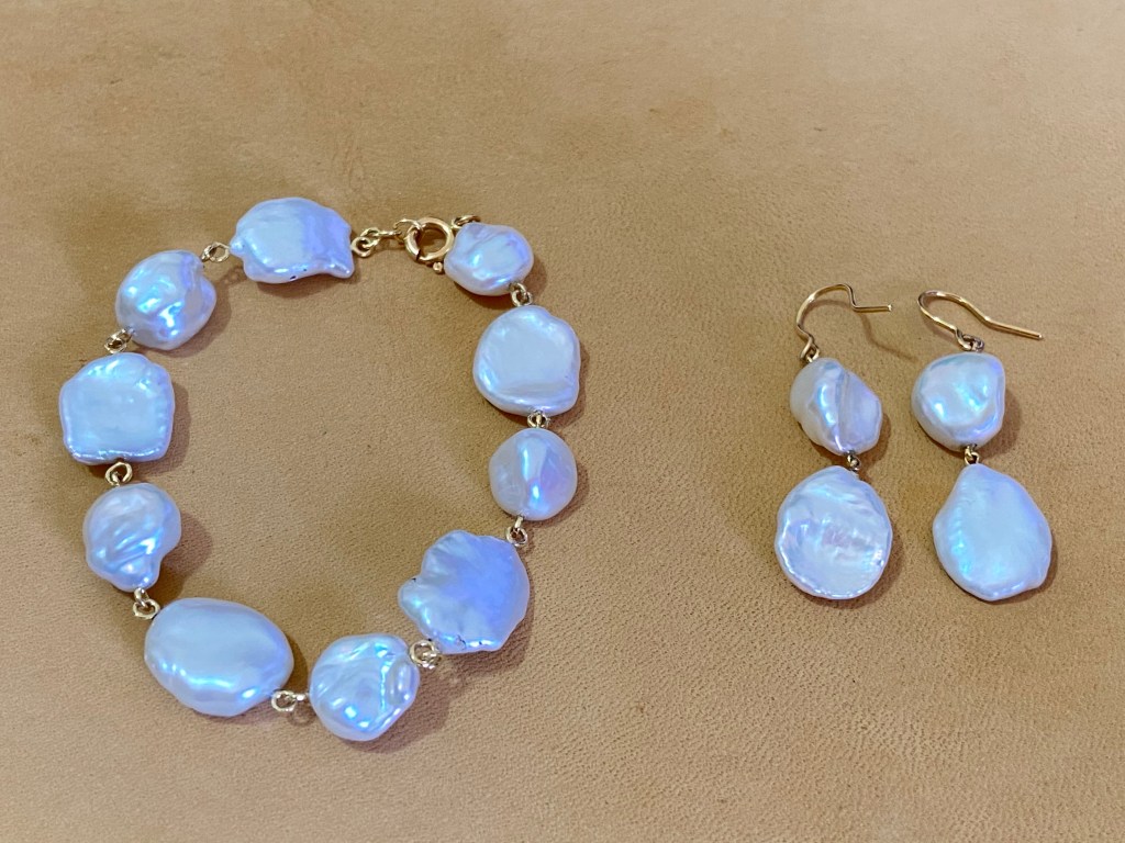 As for the last piece, bracelet, you might also noticed that the size is quite small. Yes, it’s designed by my 7-year-old niece. After she saw my earrings, she poured out the whole bag of pearls and arranged them into a circle on my working table. She asked me, can you make me a bracelet like this? I was so surprised that I already influenced her design sense. Of course I had no reason to stop her love to jewelry, maker spirit and creativity, few days later she got the bracelet as her 8 years old birthday gift.