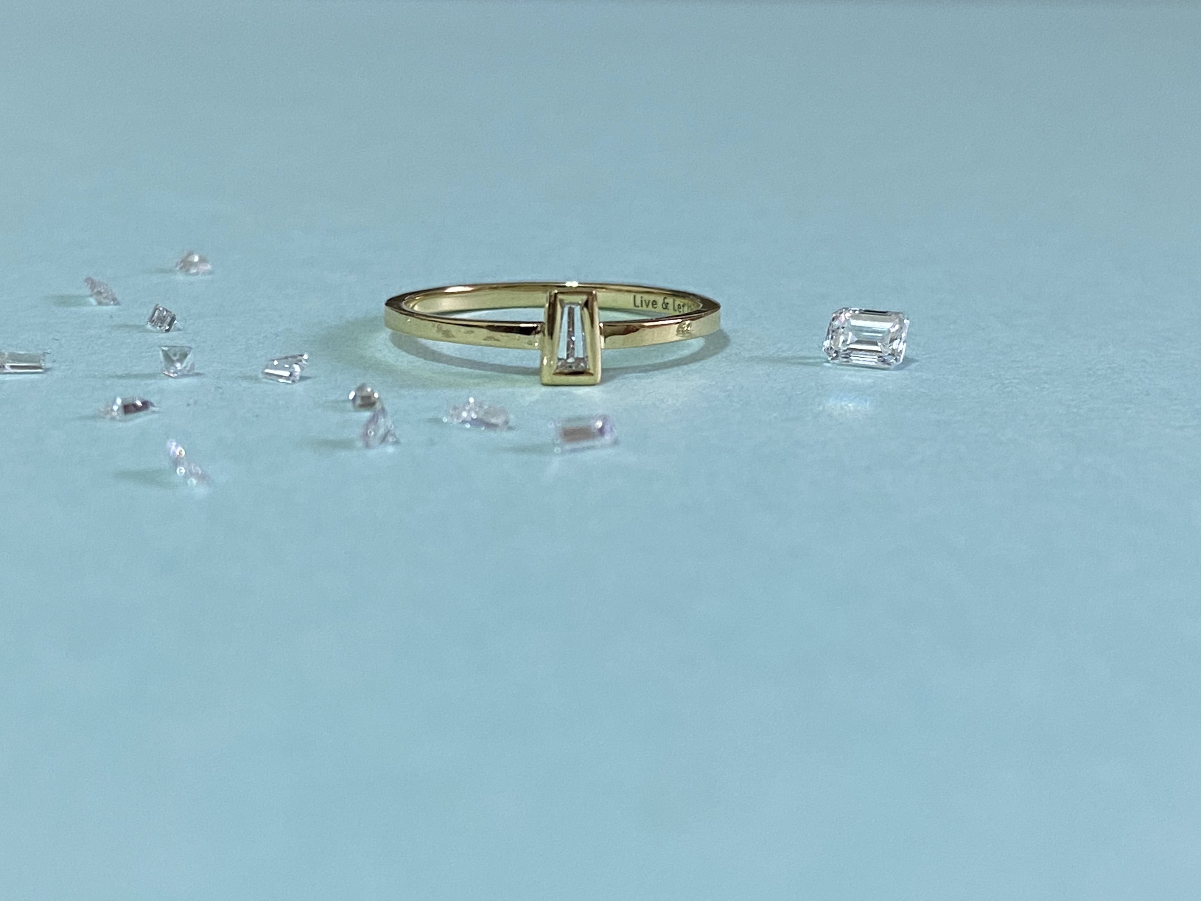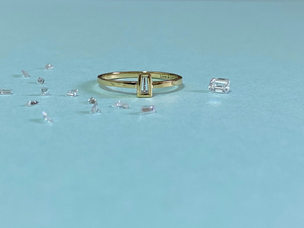I decided to make each one stand alone as if they are main stone, and the result is beyond expectation. The ring in the picture above is using one of the diamonds which is just as small as 0.08ct and yes, it’s mine. I engraved “Live & Let Live” inside the ring, somehow I think this tiny tapered diamond revived on my finger. What a wonderful leftover!!